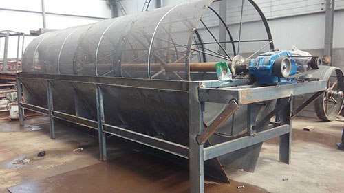滾筒裝置傾斜安裝于機(jī)架上。電動(dòng)機(jī)經(jīng)減速機(jī)與滾筒裝置通過(guò)聯(lián)軸器連接在一起,驅(qū)動(dòng)滾筒裝置繞其軸線轉(zhuǎn)動(dòng)。當(dāng)物料進(jìn)入滾筒裝置后,由于滾筒裝置的傾斜與轉(zhuǎn)動(dòng),使篩面上的物料翻轉(zhuǎn)與滾動(dòng),使合格物料(篩下產(chǎn)品)經(jīng)滾筒后端底部的出料口排出,不合格的物料(篩上產(chǎn)品)經(jīng)滾筒尾部的排料口排出。由于物料在滾筒內(nèi)的翻轉(zhuǎn)、滾動(dòng),使卡在篩孔中的物料可被彈出,防止篩孔堵塞。滾筒篩砂機(jī)、滾筒篩分機(jī)與滾筒篩的原理構(gòu)造幾乎相同,是人們對(duì)它的認(rèn)識(shí)和叫法上存在差異。